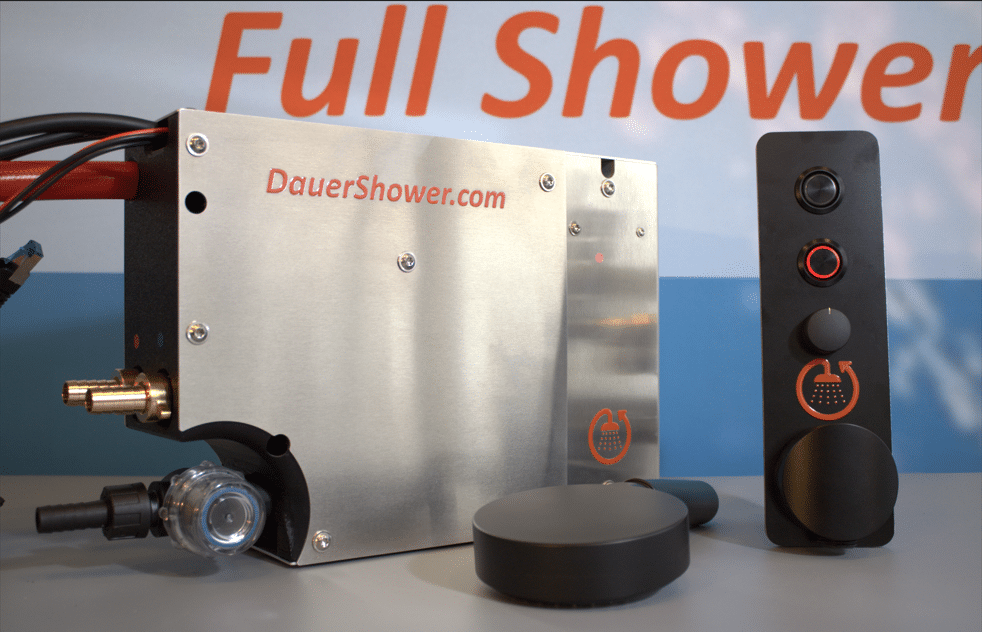 Die DauerShower 2.0 ist eine intelligente Kreislauf-Duschlösung für Wohnmobile, Campervans und Expeditionsfahrzeuge. Sie ermöglicht komfortables Duschen wie zuhause – auch unterwegs und unabhängig von großen Frischwassertanks. Statt der üblichen 30 bis 40 Liter Wasser pro Dusche werden nur etwa 5 Liter Frischwasser benötigt.